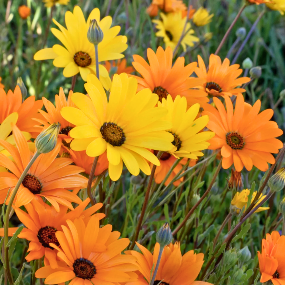 Cape Marigold (African Daisy) is an old, popular variety. These low-growing, sun-loving plants produce abundant, brightly coloured daisy-like flowers in shades of orange, yellow and white — perfect for borders, rockeries, containers and mass displays. They’re drought-tolerant, fast to establish and give a long, cheerful seasonal show that’s ideal for beginner and experienced gardeners alike.